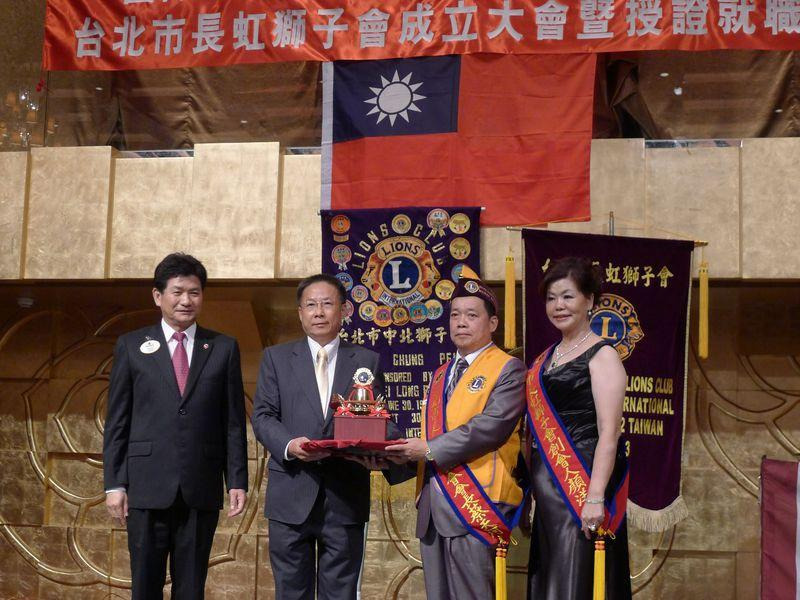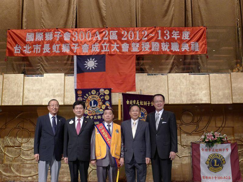 長虹獅子會新會成立大會,台灣總會(GMT)張呂章協調長代表台灣蔡金鍊總會長前來道賀及贈送新會成立基金,李仙生,邱木源兩位前總監擔任導師,勤勉敬業真誠服務的李樹枝總監亦予以勉勵加持,當天出席致賀貴賓與獅友非常踴躍.創會員35位.