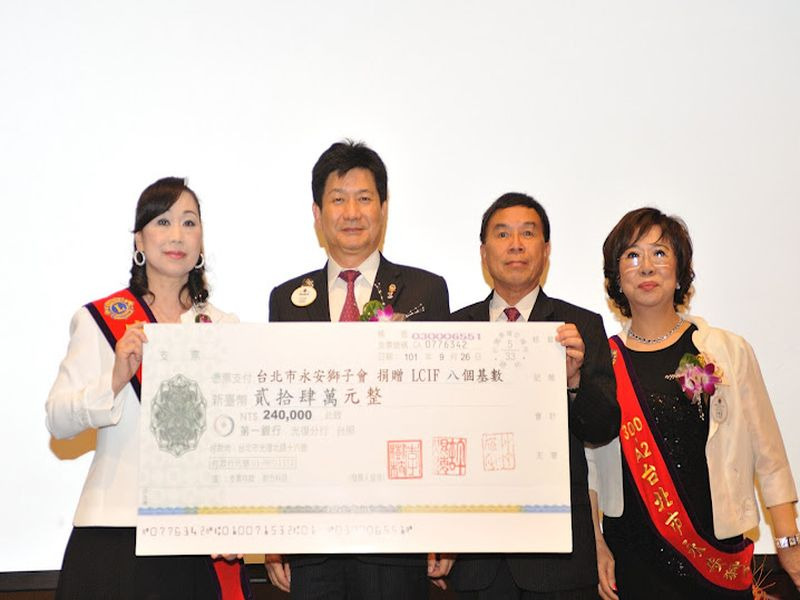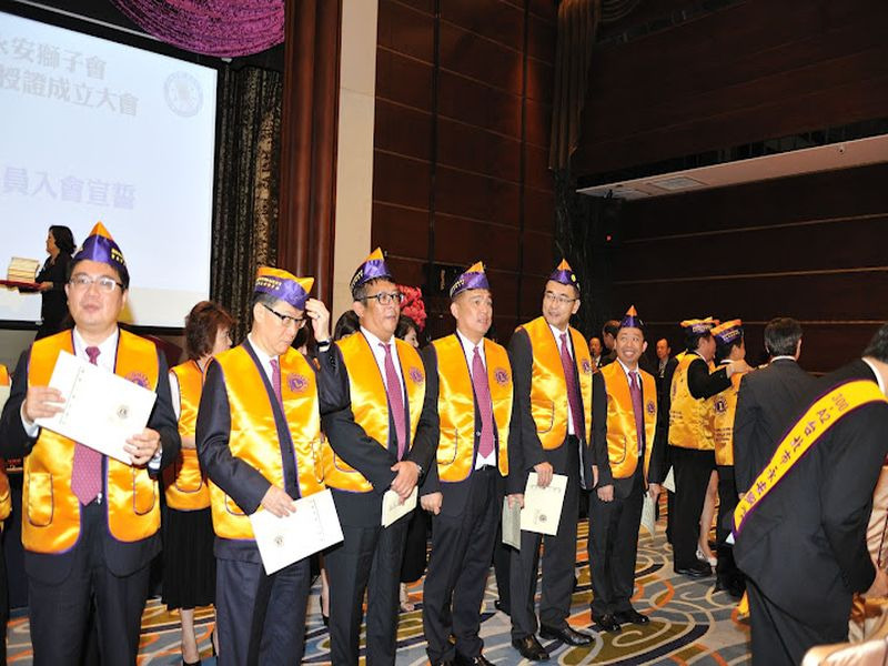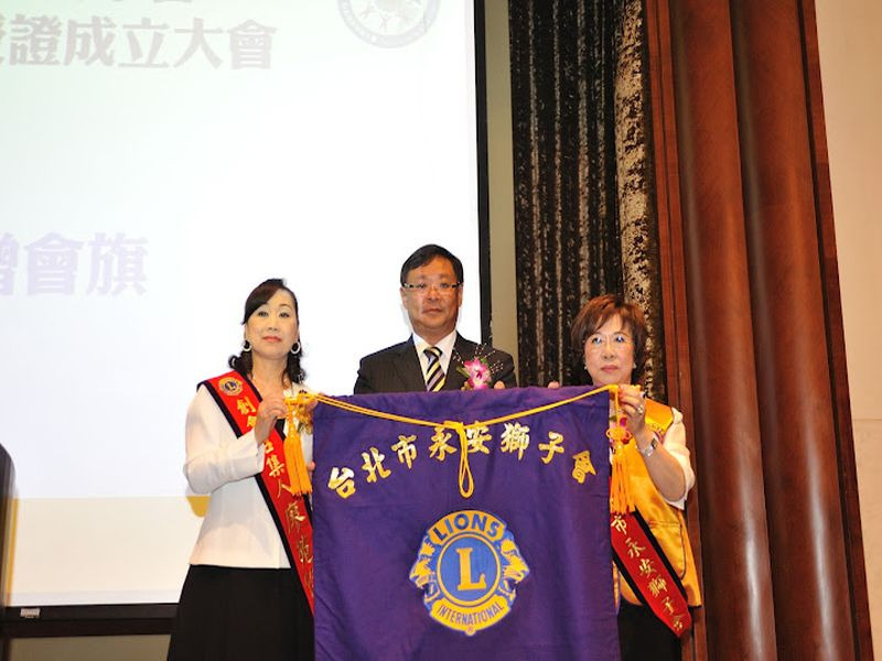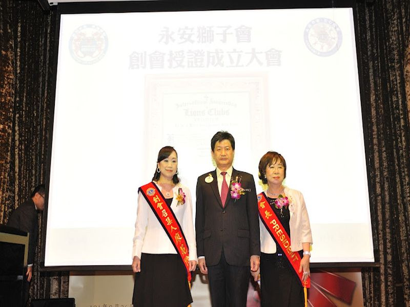 300A2區第九十三分會成立<台北市永安獅子會>由老松獅子會輔導,創會人廖菀伶獅友,創會會長王婉蓁獅友,率新獅友共32人舉行入會宣誓及理監事宣誓就職暨授證典禮。李樹枝總監率全體內閣出席祝賀外並代表A2區頒發新會成立社福金十萬元整及致贈每位獅友總監旗及領巾或領帶。台灣總會由榮譽副總會長王錫淵及GMT協調長張呂章獅友前來祝賀並頒發新會成立社福金十萬元,永安獅子會也慷慨解囊捐贈LCIF八個基數新台幣二十四萬元整,典禮圓滿成功。(攝影 王銘修)