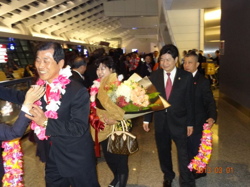 300A2區歡迎355-A地區姊妹區,共77位獅友與獅嫂來訪,盛況空前,李樹枝總監親率兩位副總監暨50位A2區領導獅友機場獻花接機,零晨時刻抵達,展開公式參訪聯誼的第一天。(圖片,文稿副資訊長劉湘潮)第一天網站報導.