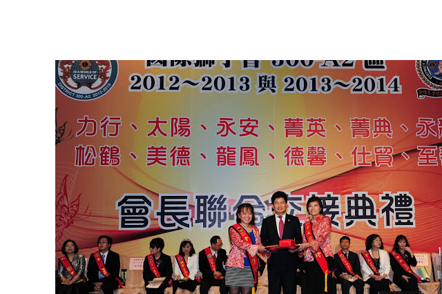 300A2區為節約寶貴社會資源,故鼓勵並促成協助各會共同舉辨會長聯合交接典禮,典禮於大直典華旗艦館舉行,共有12個會參加,典禮簡單隆重,並避免時間與金錢浪費。